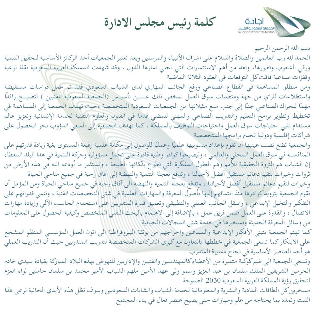 هي جمعية أهلية مسجلة بالمركز الوطني لتنمية القطاع غير الربحي برقم (930) وتاريخ 5/7/2018م، تهدف إلى تأهيل وتطوير الكفاءات الفنية من الجنسين لسوق العمل المحلي والعالمي، عبر معايير مهنية عالية الجودة. تأسست لتعزيز مكانة الفنيين والفنيات وتمكينهم من خلال برامج تدريبية متخصصة، وربطهم باحتياجات القطاعات الصناعية والعملية المختلفة.